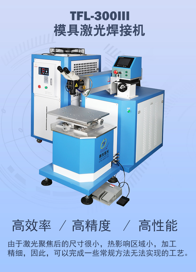 • 通發(fā)激光TFL-300Ⅲ大功率模具激光焊機,比普通激光焊機修復模具效率快1.5-2倍,適合0.3-0.6激光焊絲,大功率更適合修復鈹銅模具、鋁模等較難修復的模具。